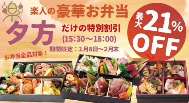 夜のお食事に!お弁当全品15:30以降のお届けで最大21%OFF